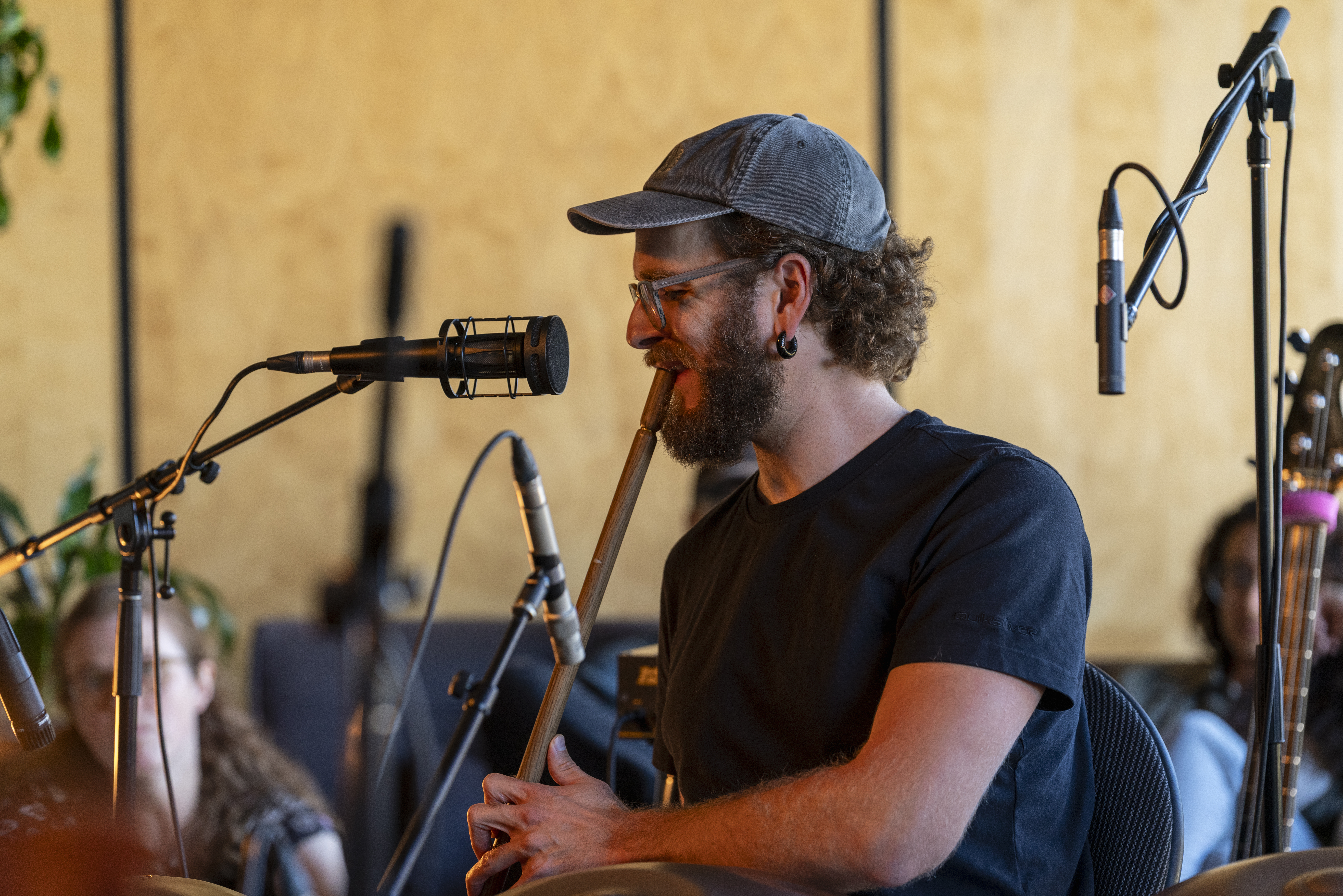 Passionné des musiques du monde depuis plus de 15 ans et fondateur de sa propre entreprise de fabrication et de cours de musique Cigale Instruments, les vents et percussions du monde ont pris une place très importante dans la vie de Pierre-Olivier Bolduc. En plus de donner des ateliers d’initiation et des conférences sur le handpan, le didgeridoo et les flûtes du monde, il enseigne la pratique de ces instruments qu’il maîtrise admirablement à travers la ville de Montréal et ses environs. Pierre-Olivier propose également des cours de didgeridoo aux gens qui souffrent d’apnée du sommeil. Il est aussi l’un des rares fabricants québécois de cet instrument vibratoire. Il sait que la richesse sonore des instruments qu’il joue vaut la peine d’être incorporée dans la musique fusion d’ici. Étant un des pionniers du handpan et ses dérivés au Québec, Il a fondé Handpans Québec en avril 2014, un groupe Facebook ayant pour but de créer et rassembler la communauté des joueurs de handpan locaux autour d’événements tel que PANiaque, un festival annuel de handpan qu’il co-organise. Le groupe compte maintenant 2300 membres. Pierre-Olivier contribue à l’expansion de ces instruments envoûtants au Québec en collaborant avec des fabricants artisanaux réputés nationaux : Panacea Sonora (Québec) | Tank Drum Earth (Québec) | Peacepans (Ontario) mais aussi internationaux : Yishama (Israël) | Tacta (Brésil) | Sew (Italie). Il innove constamment au niveau de la technicité de jeu de ces instruments et c’est ce qu’il préfère mettre en valeur dans ses concerts. Il s’est créé un dialogue d’enseignement propre à son image et le transmet avec passion à ses élèves via des cours de groupe qu’il organise un samedi par mois à Montréal. Depuis les deux dernières années, il joue de plus en plus dans les maisons de la culture du Québec avec certains de ses projets musicaux et contribue à la diffusion et l’intégration de ces instruments dans un contexte médiatique et artistique actuel.